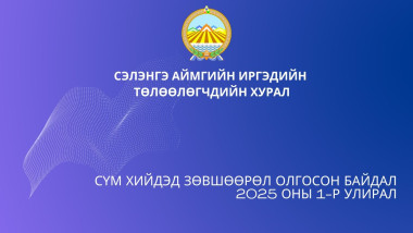 СЭЛЭНГЭ АЙМГИЙН НУТАГ ДЭВСГЭРТ СҮМ ХИЙД БАЙГУУЛАХ, ҮЙЛ АЖИЛЛАГАА ЯВУУЛАХ ЗӨВШӨӨРӨЛ ОЛГОХ ЖУРАМ