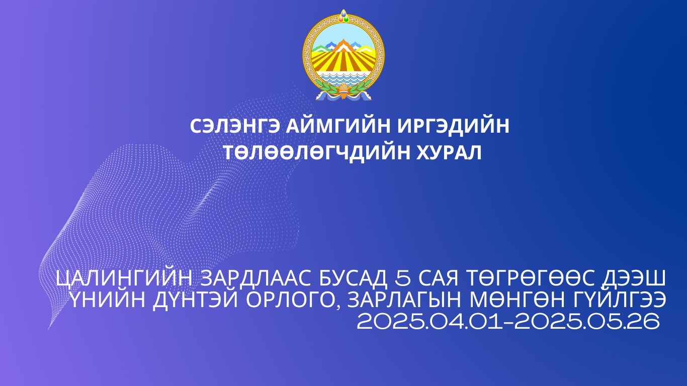 Цалингийн зардлаас бусад 5 сая төгрөгөөс дээш үнийн дүнтэй орлого, зарлагын мөнгөн гүйлгээ 2025.04.01-2525.05.26