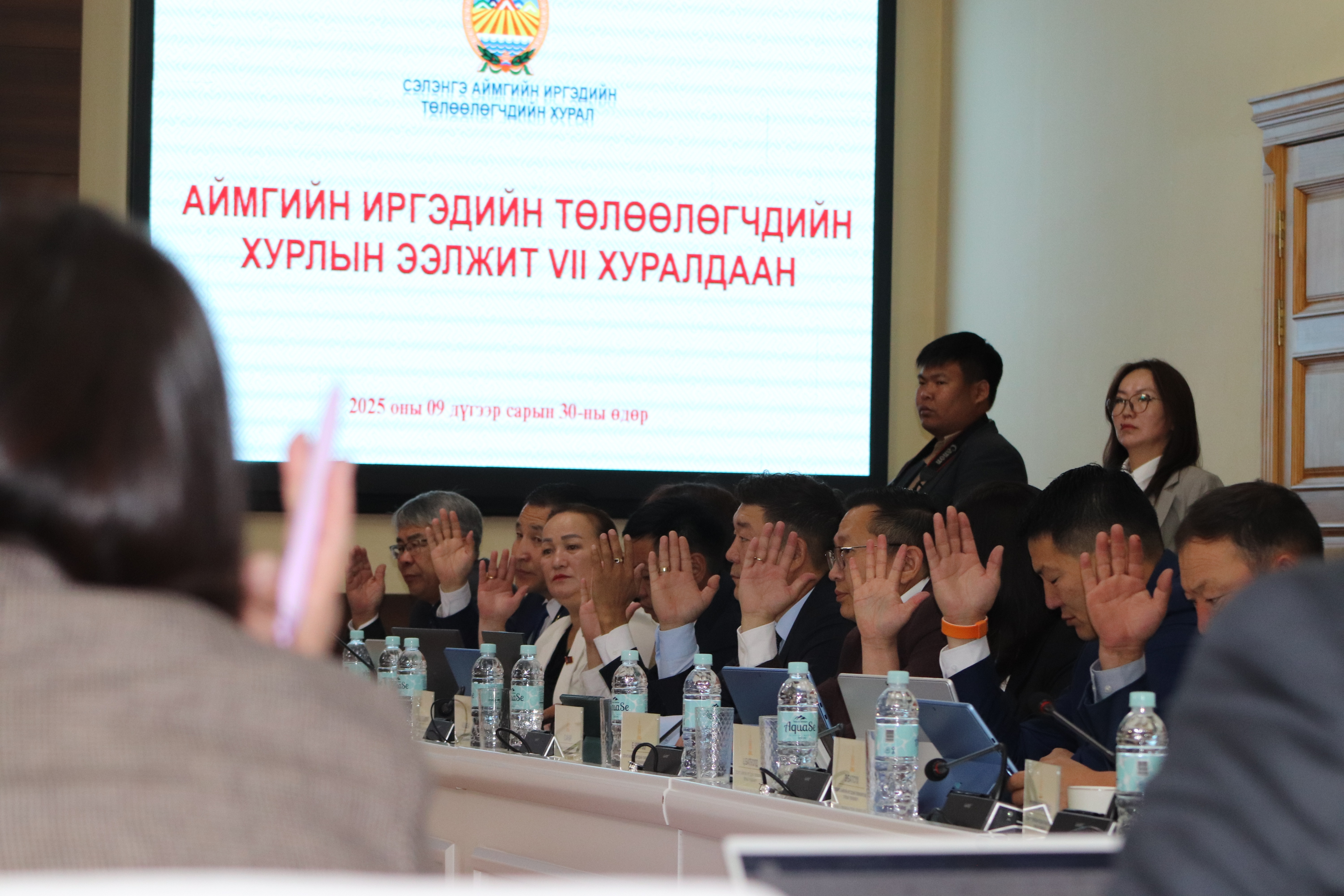 Сэлэнгэ аймгийн иргэдийн Төлөөлөгчдийн Хурлын ээлжит VII хуралдаан 2025 оны 09 дүгээр сарын 30-ны өдрийн 09:30 цагт хуралдаж эхэллээ. Хуралдаанд оролцвол зохих 41 төлөөлөгчөөс 4 төлөөлөгч чөлөөтэй, 33 төлөөлөгч оролцож хуралдааны ирц 80.4 хувь байна. Хуралдаанаар: