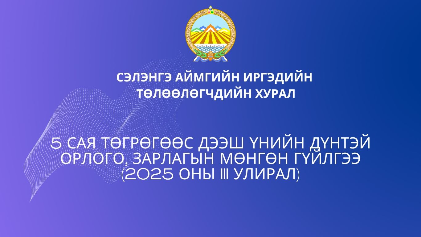 5 сая төгрөгөөс дээш үнийн дүнтэй орлого, зарлагын мөнгөн гүйлгээ (2025 оны III улирал)