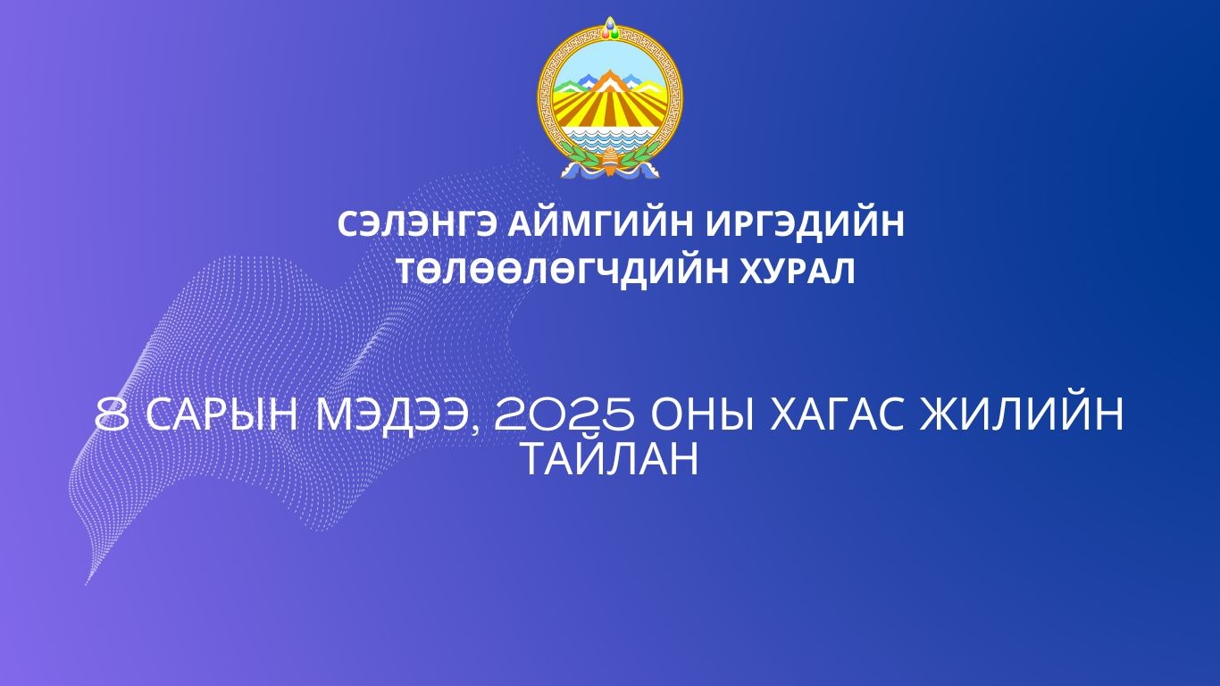 8 САРЫН МЭДЭЭ, 2025 ОНЫ ХАГАС ЖИЛИЙН ТАЙЛАН
