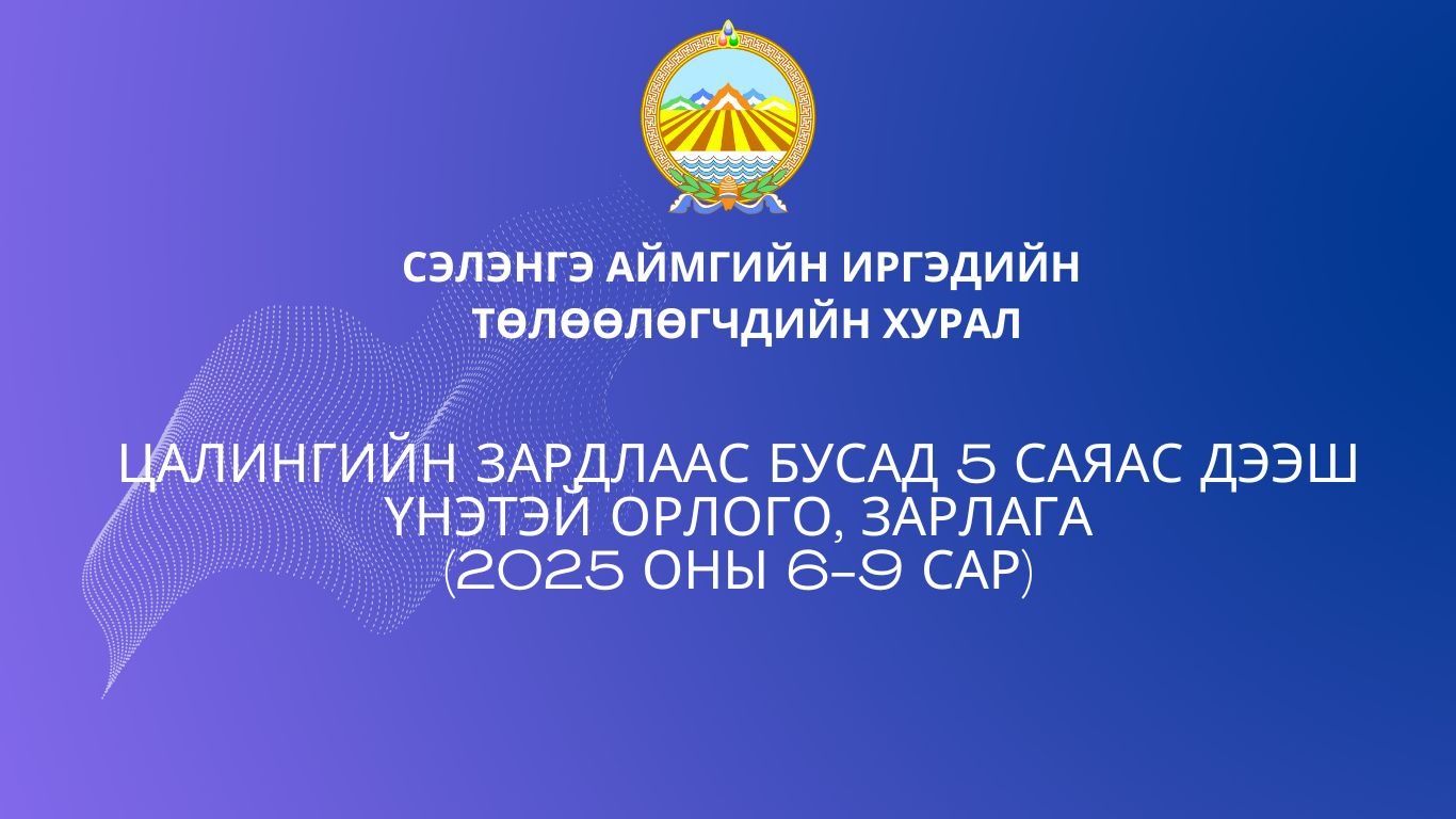 ЦАЛИНГИЙН ЗАРДЛААС БУСАД 5 САЯАС ДЭЭШ ҮНЭТЭЙ ОРЛОГО, ЗАРЛАГА (2025 ОНЫ 6-9 САР)