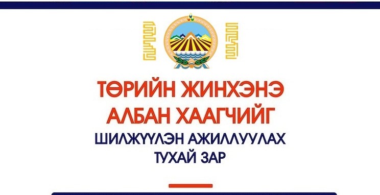 ТӨРИЙН ЖИНХЭНЭ АЛБАН ХААГЧИЙГ ШИЛЖҮҮЛЭХ, СЭЛГЭН АЖИЛЛУУЛАХ ТУХАЙ ЗАР