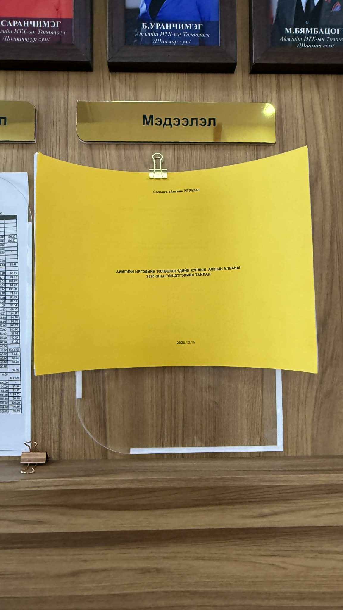 Аймгийн ИТХ-ын ажлын албаны 2025 оны гүйцэтгэлийн тайлан